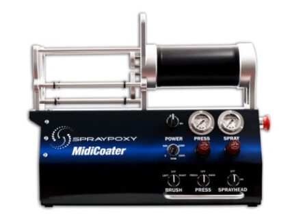 Entre las soluciones disponibles destacan equipos como el Midi Coater Air Pressure, el FX5-Mini, el FX5-Compact y el FX5-Maxi, diseñados para adaptarse a diferentes dimensiones y condiciones de trabajo. Además, existen accesorios específicos como cepillos, rociadores y turbinas que facilitan la limpieza y el recubrimiento interior de los bajantes, garantizando un resultado óptimo.
